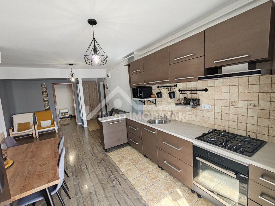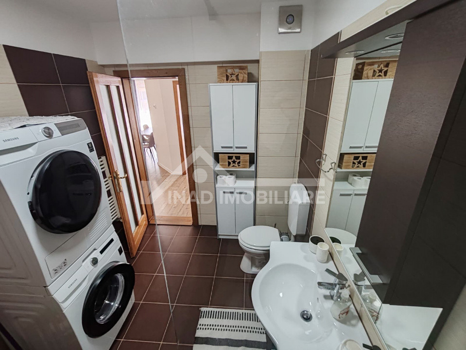 Locuinta se inchireaza complet utilata cu: masina de spalata rufe, uscator rufe, plita pe gaz, hota, frigider, cuptor electric, cuptor cu microunde, aspirator, aparat aer conditionat.