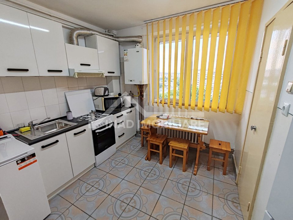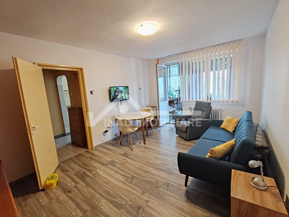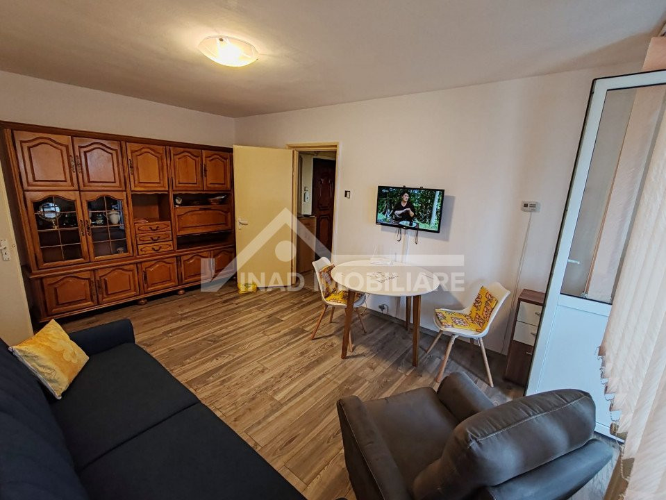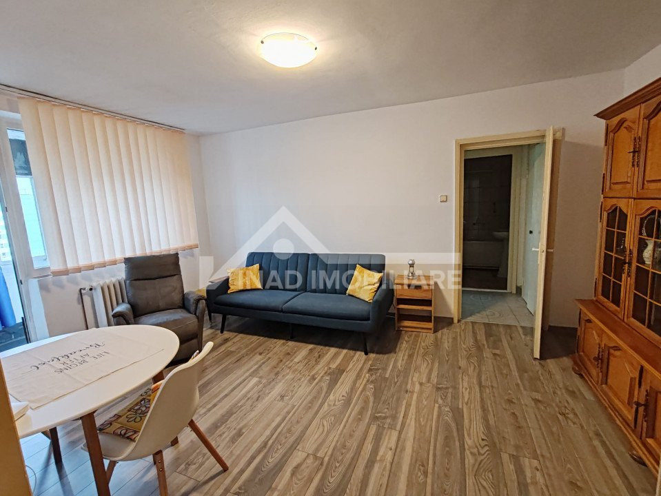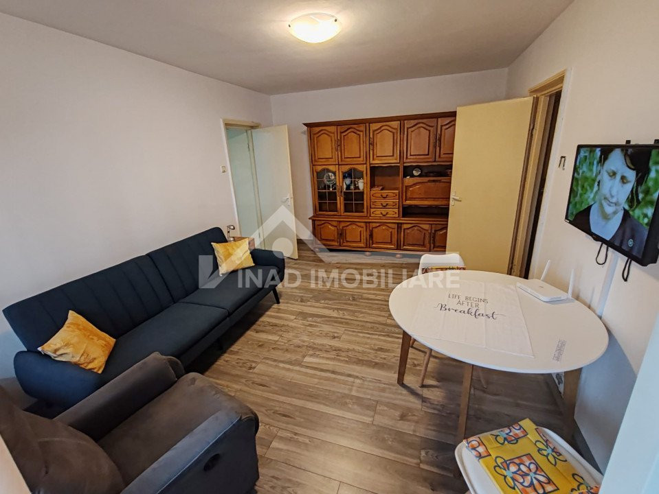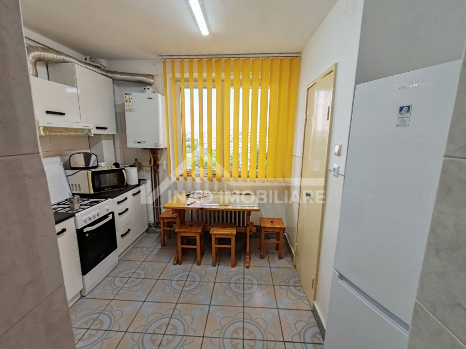 Apartamentul este compartimentat astfel; 2 camere din care una de trecere, balcon, bucatarie, hol, baie, debara, camara, locuinta se inchireaza complet mobilata si utilata la pretul de 400 euro.