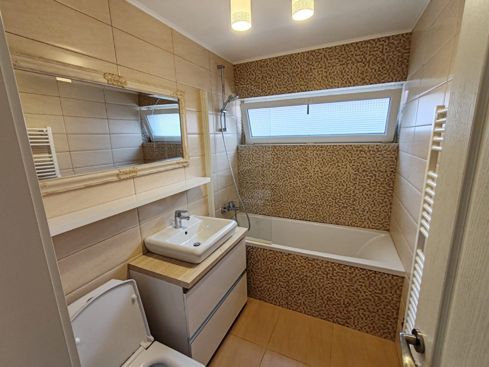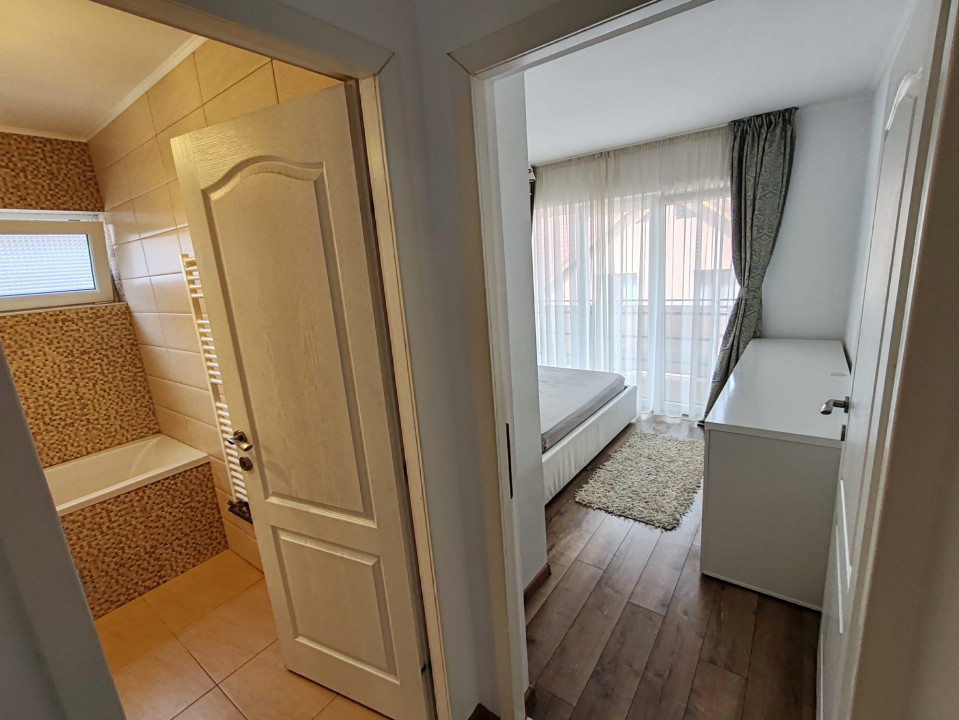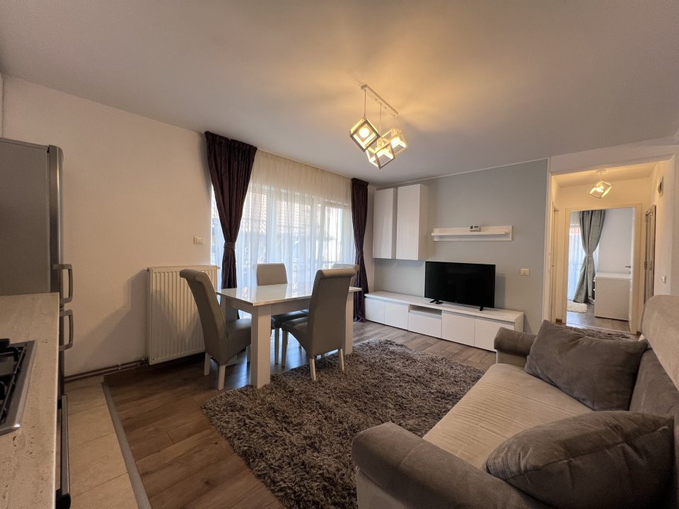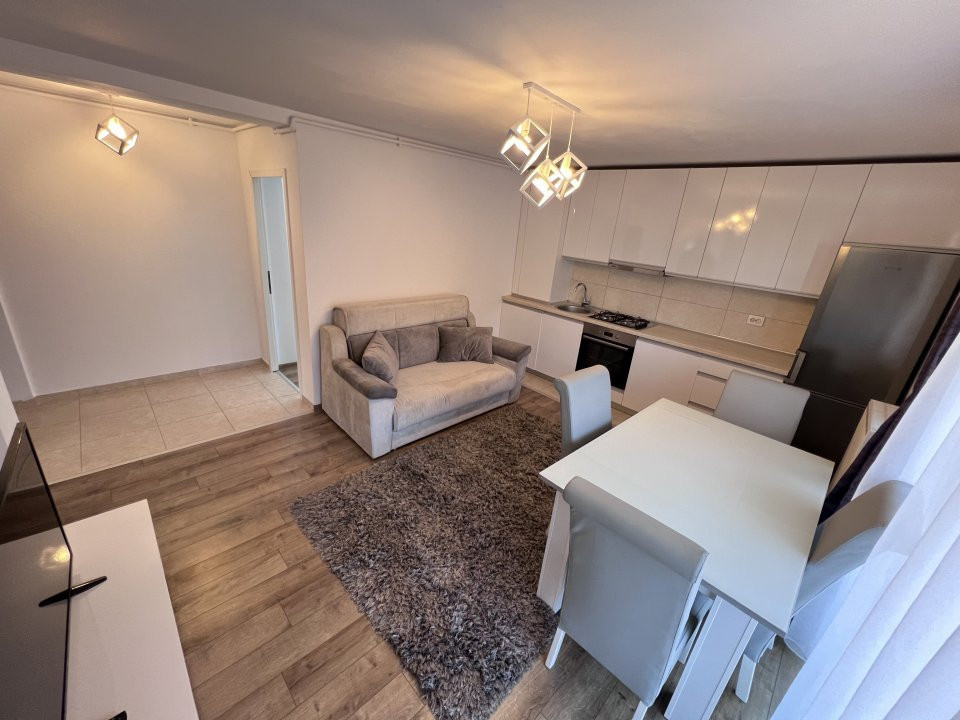 Apartamentul este situat la etajul 1 din 2, are suprafata utila de 47 mp, fiind compartimentat astfel; living cu bucatarie, 2 dormitoare, 2 balcoane, baie cu geam, hol, detine si un loc de parcare subteran, locuinta este finisata, incalzirea se face cu centrala termica proprie.