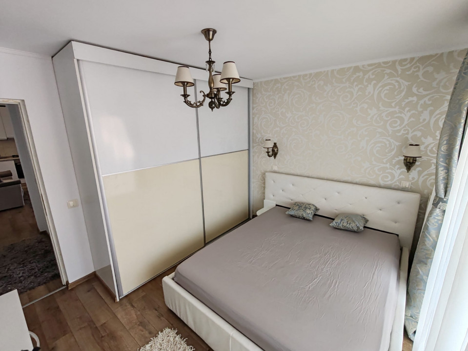 Apartamentul se vinde complet mobilat si utilat modern impreuna cu un loc de parcare subteran la pretul de 168.0000 euro.